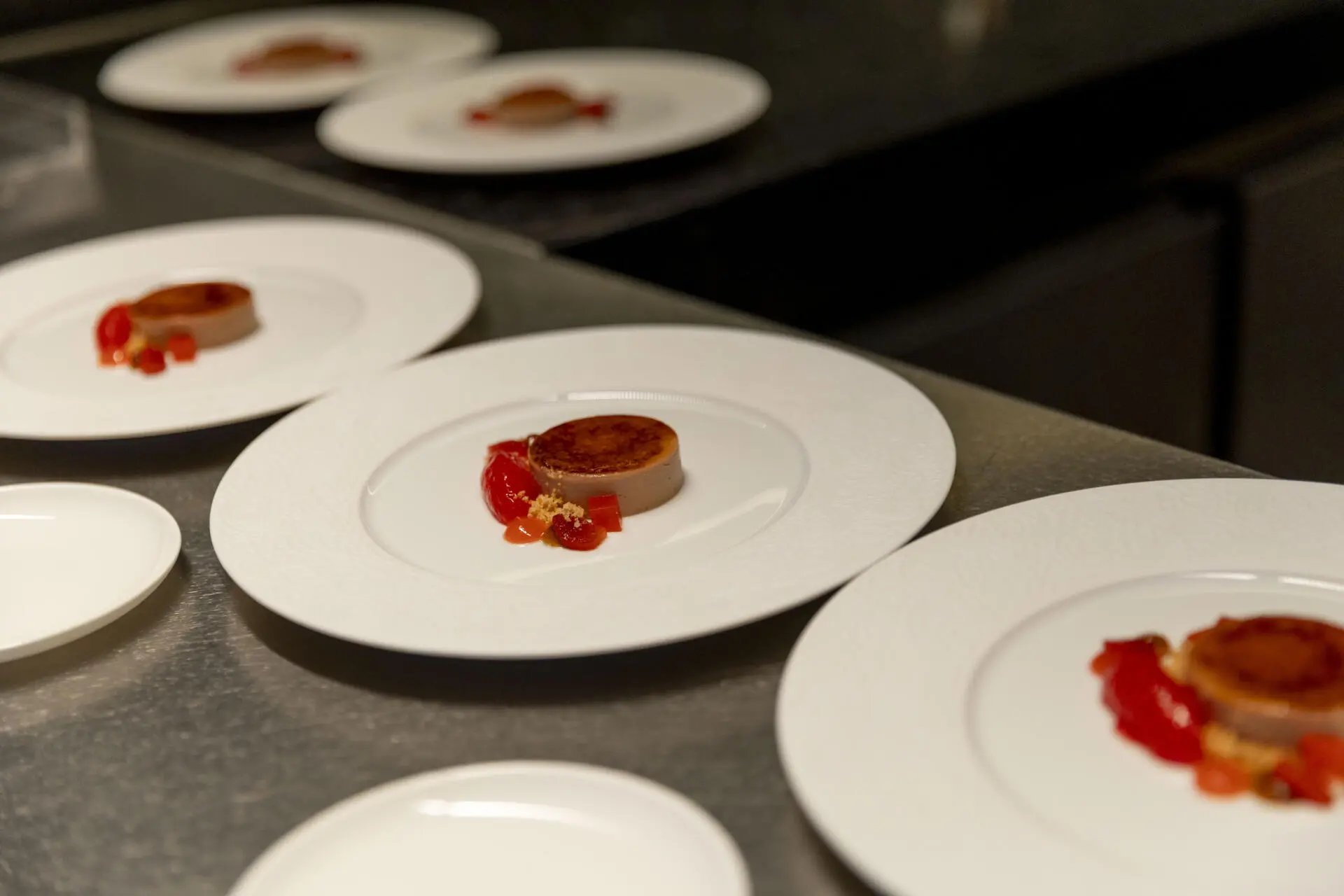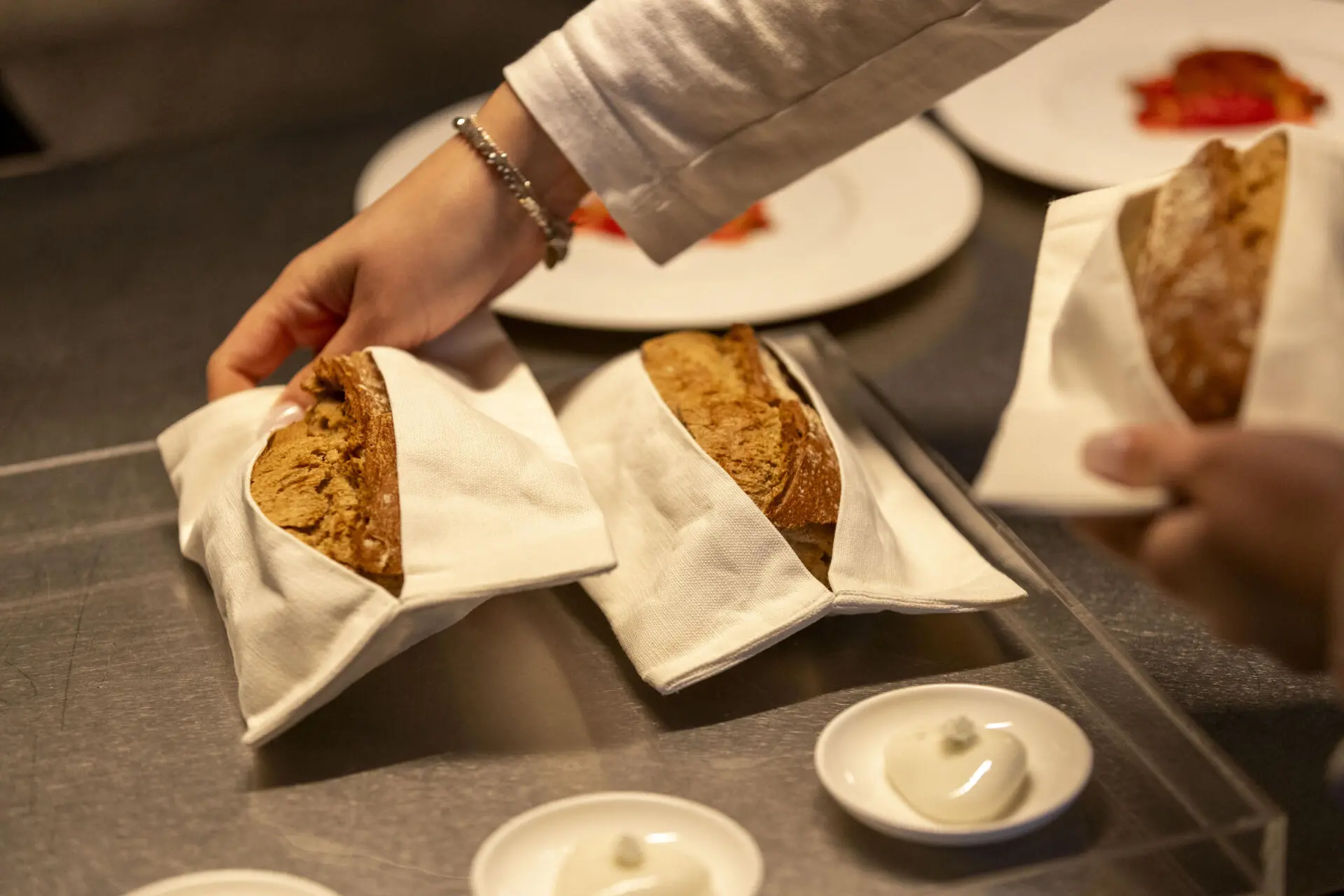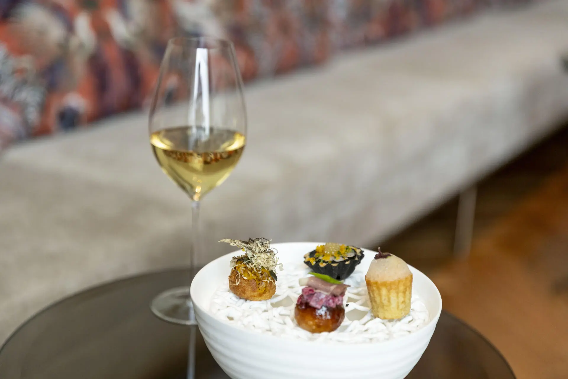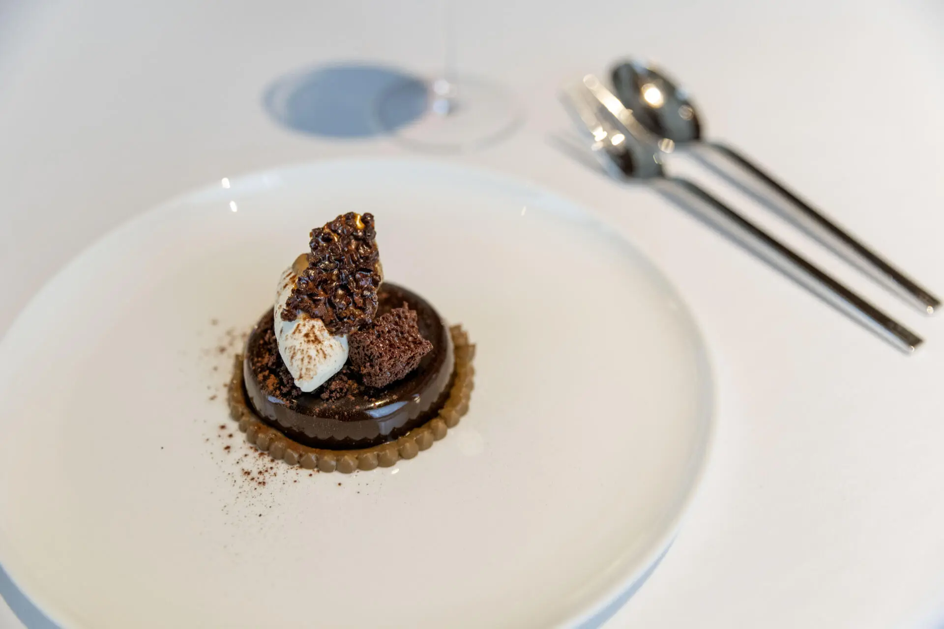 A refeição começa com alguns apontamentos de disparo de sabor e logo vem o primeiro prato. Trata-se de enguia fumada, num tratamento delicado e inteiramente novo do pequeno peixe. Neste caso, a assessoria acontece de forma quase mágica através de rabanetes e maçã, harmonizados com mestria. Segue-se o prato Bivalves, genialmente apresentado como um divertimento de vários exemplares, sobre espargos brancos e manteiga clarificada. Resulta numa incrível ligeireza no palato, ao mesmo tempo que nos mostra detalhadamente cada ingrediente, com cozedura individualizada, para no conjunto tudo funcionar coletivamente na perfeição.