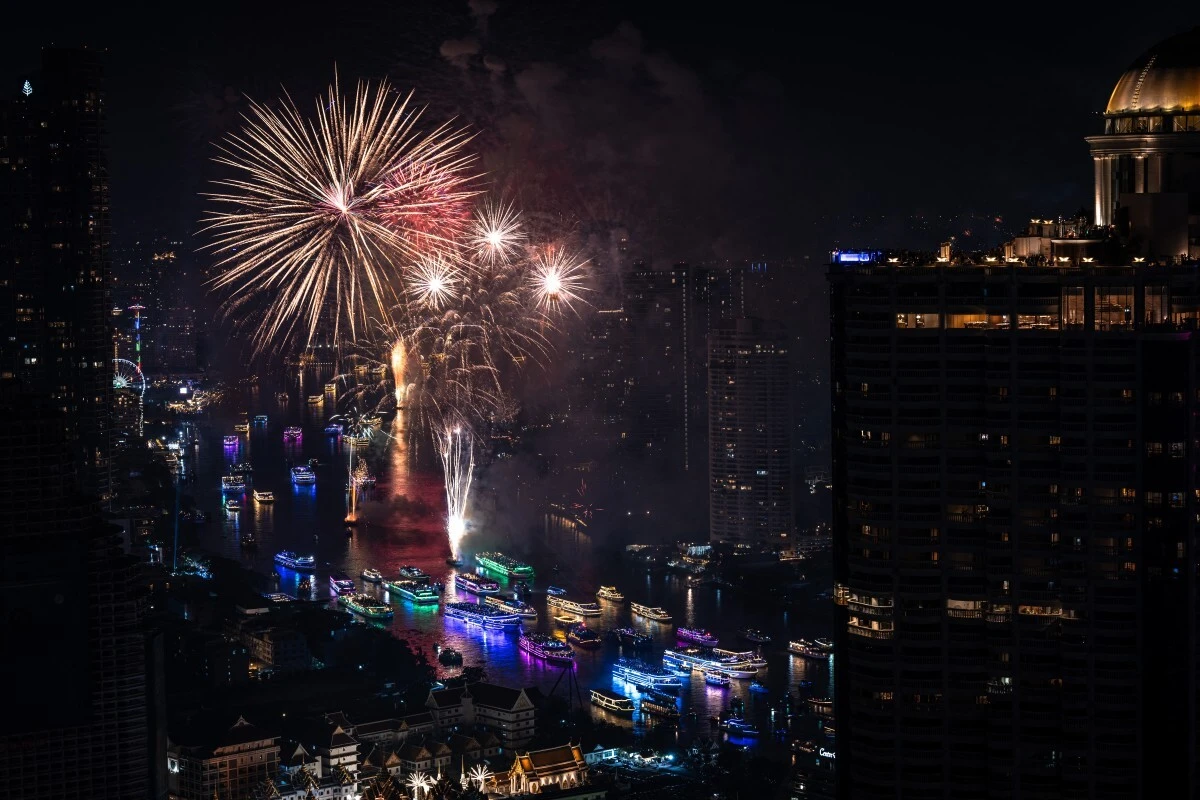 A Tailândia celebrou o novo ano com uma queima de fogos sobre o rio Chao Phraya, na capital do país, Banguecoque. O evento tem lugar num espaço com vista para templos incónicos, como o Wat Arun.