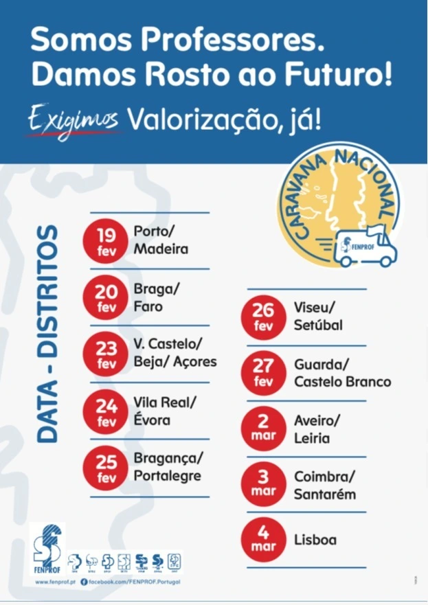 Esta terça-feira, a Fenprof terá uma conferência de imprensa, em Lisboa, onde anunciará o percurso detalhado destas caravanas e também os novos dados sobre a educação pública no país. José Feliciano destaca o aumento do número de alunos sem professores. De janeiro de 2025 a janeiro de 2026, "o aumento do número de alunos sem aulas é de 28,4%".
