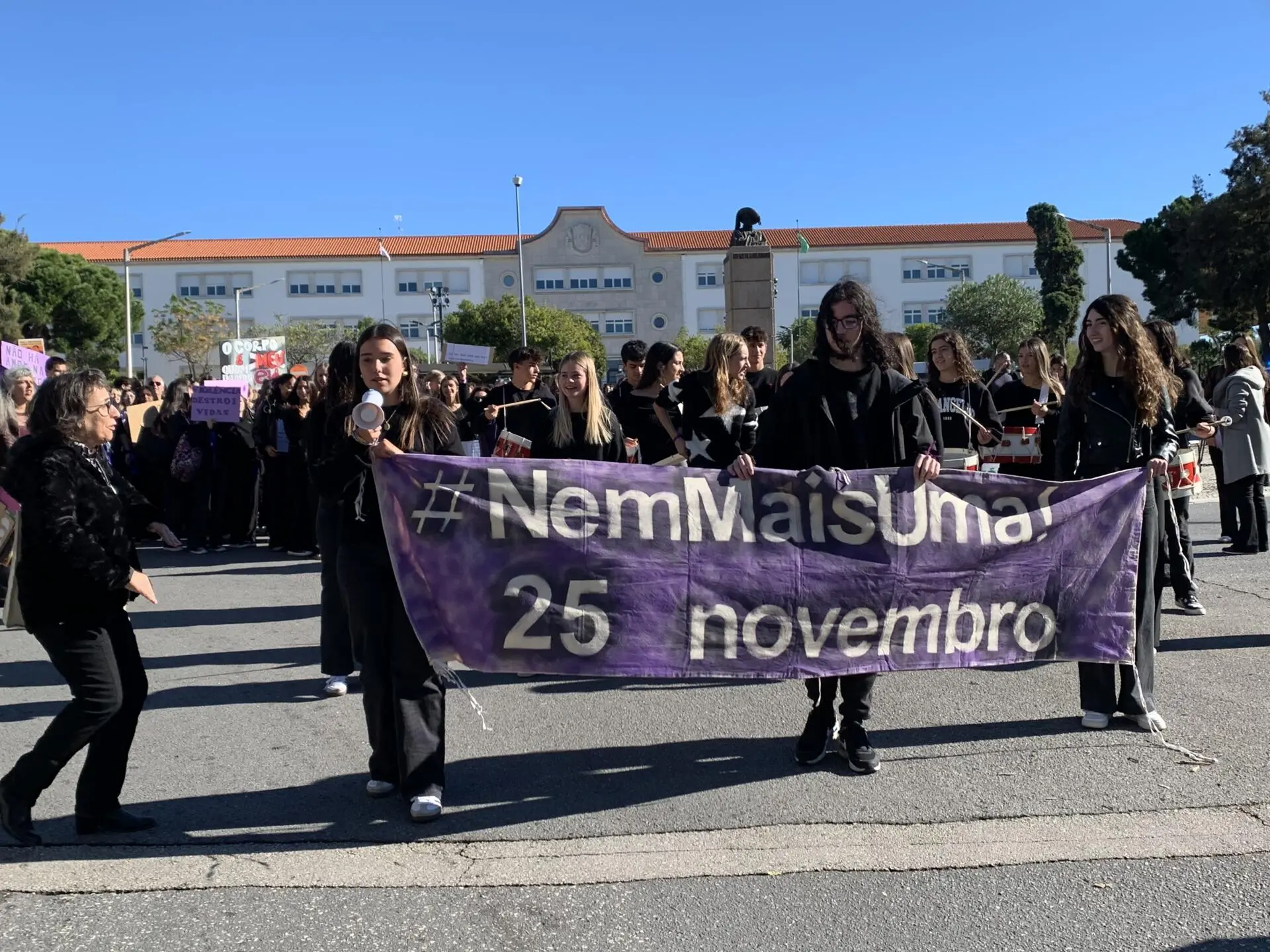 Tomás, de 16 anos, era um dos alunos que tocava bombo no desfile e adianta que "é importante dar voz a esta causa e às mulheres que são vitimas".
