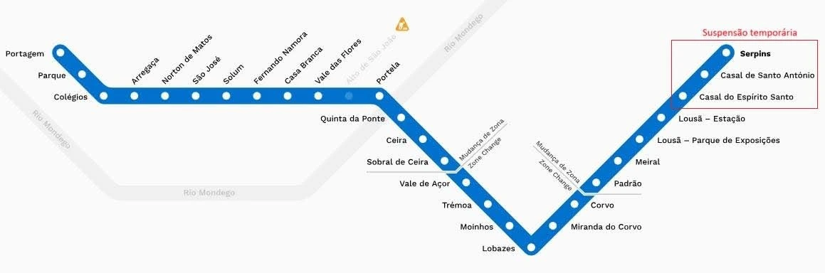 Numa nota de imprensa, a Metro Mondego explica que a decisão de suspensão temporária afeta três estações do canal, nomeadamente Casal de Espírito Santo, Casal de Santo António e Serpins, numa extensão de seis quilómetros, na Lousã, distrito de Coimbra.