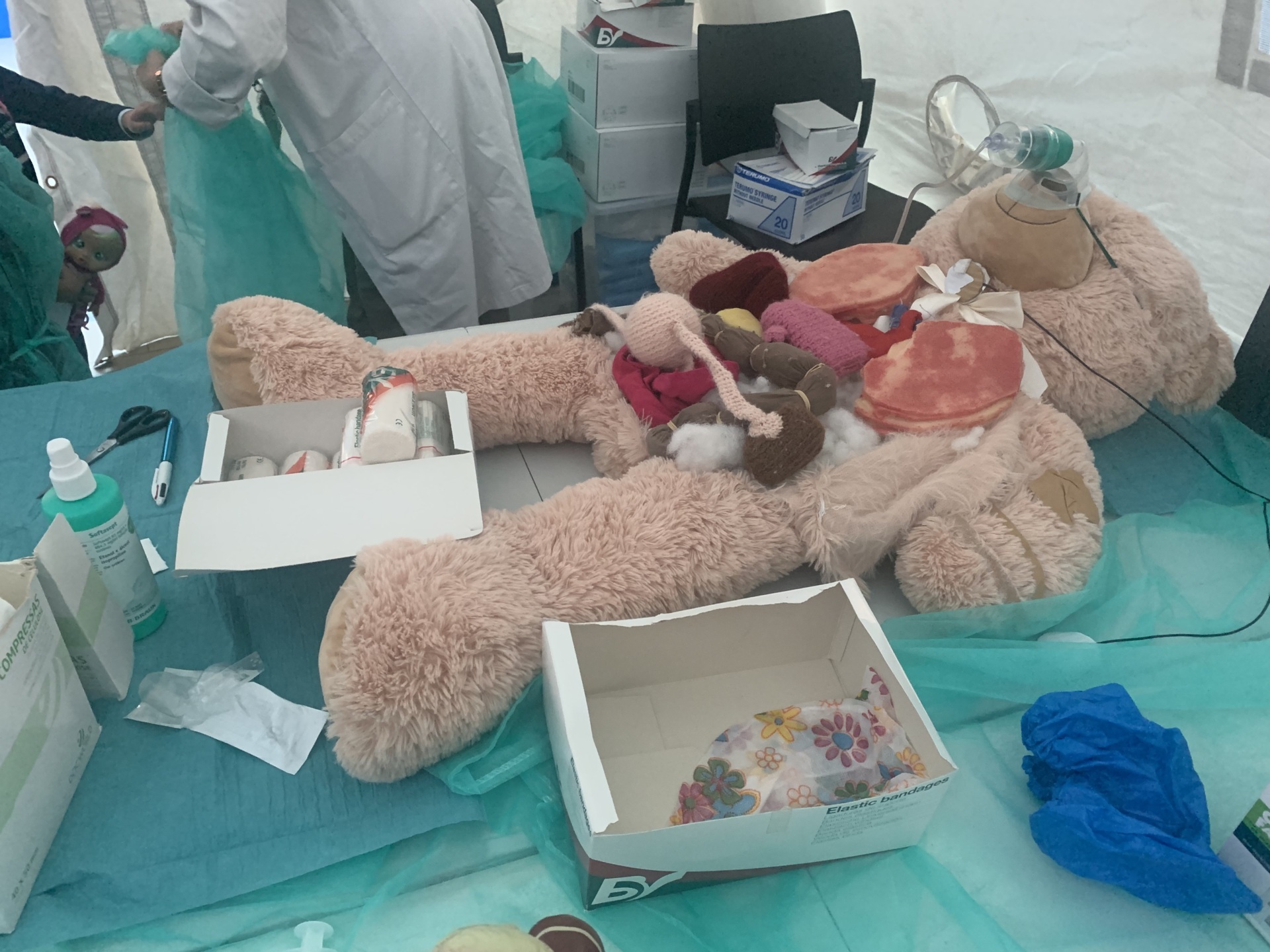 Quem entra na entrada principal do Hospital de Braga vê uma tenda branca que funciona como uma espécie de mundo encantado dos cuidados hospitalares. Lá, as crianças tornam-se as cuidadoras e os bonecos que trazem na mão são os doentes.