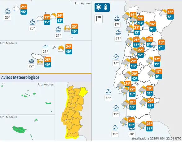 O IPMA recomenda o acompanhamento das previsões e avisos meteorológicos atualizados em www.ipma.pt.