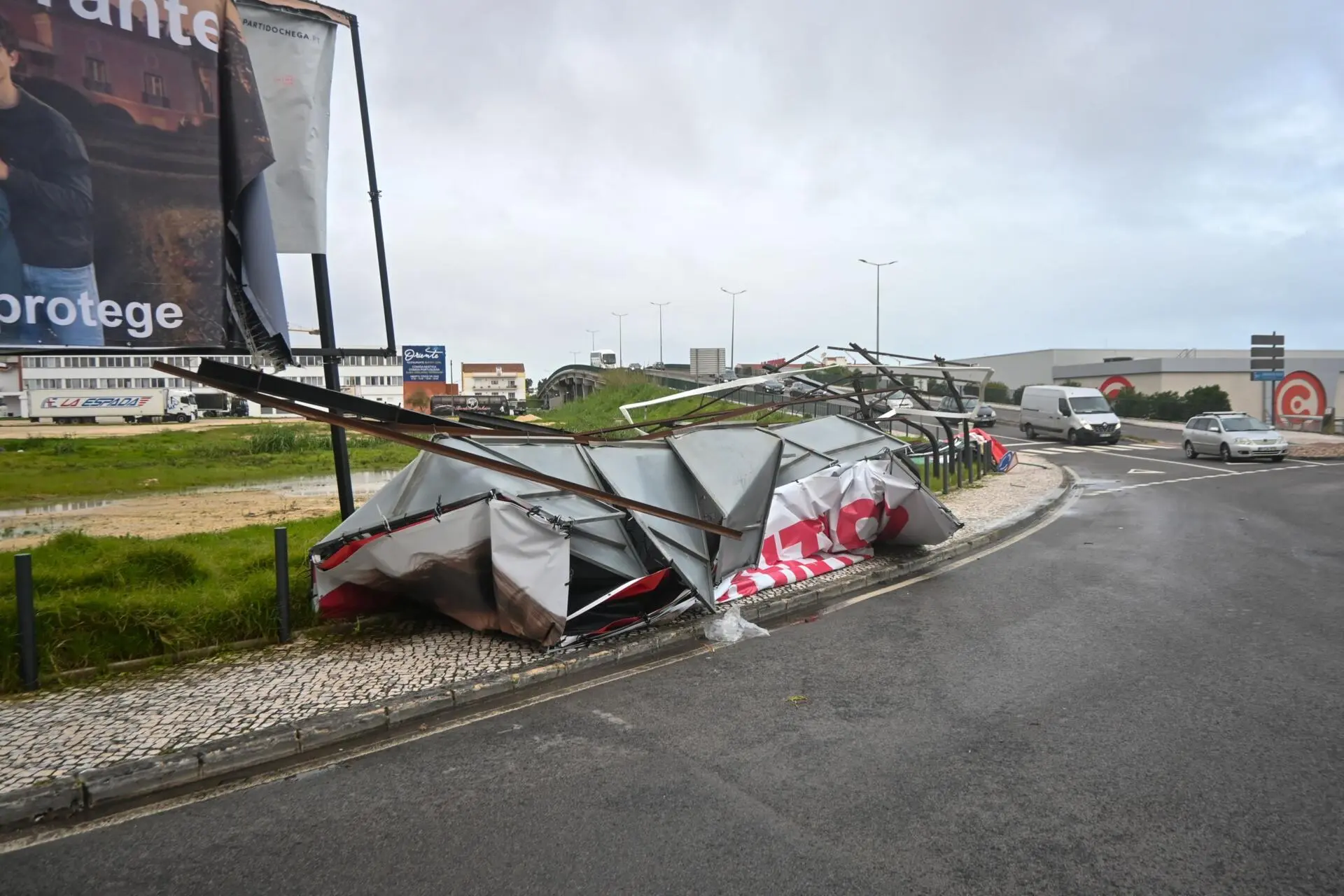 - Vários painéis de publicidade foram destruídos. Créditos: Carlos Barroso/Lusa
