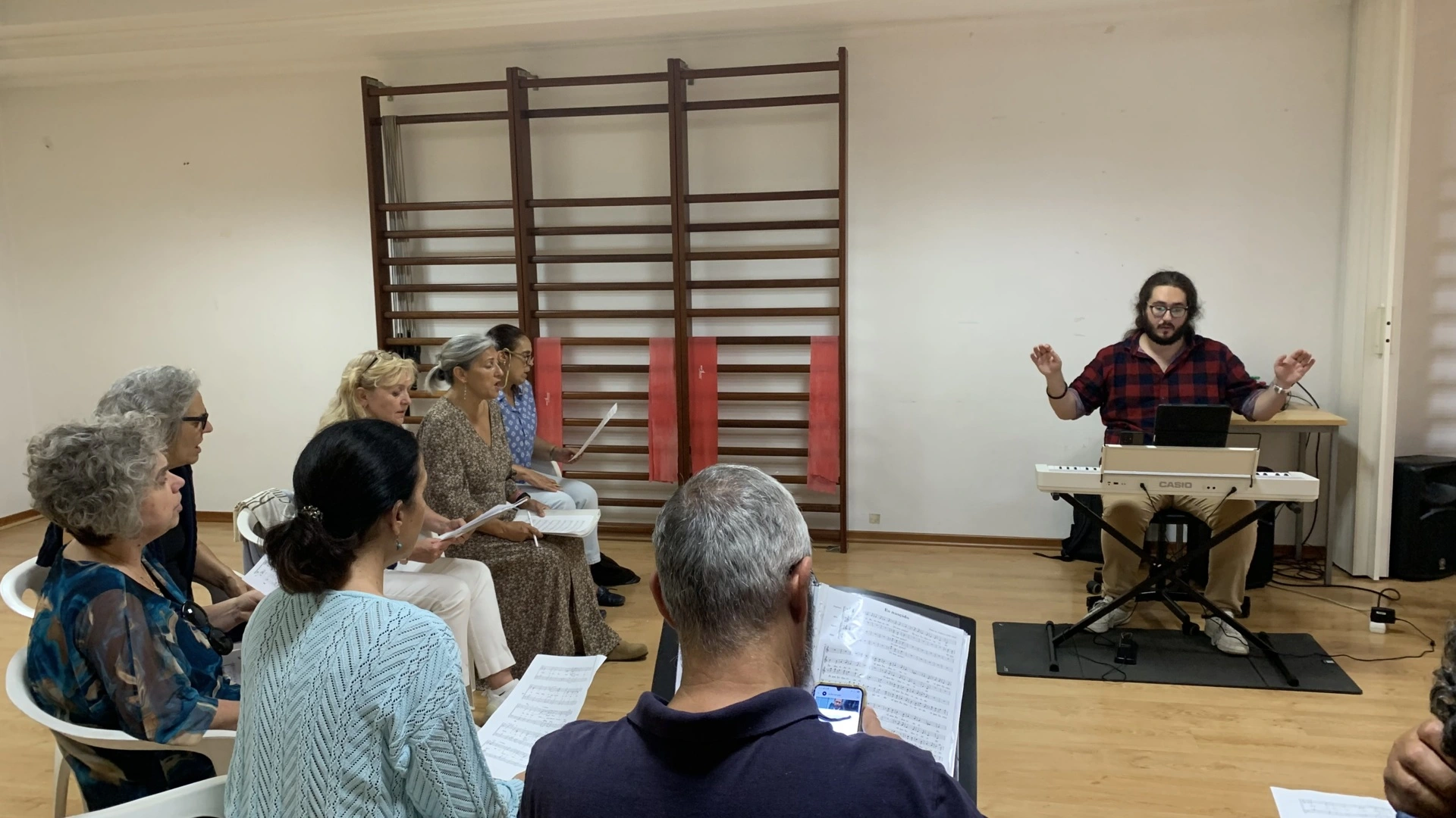 São 19h00 e a azáfama antes do ensaio dá vida aos corredores do Centro Cultural de Algés. Os coralistas, membros do (In)Temporal Chorus, vão chegando e as conversas cruzam-se no caminho para a sala onde, daqui a pouco, hão de ouvir-se vozes ao alto.