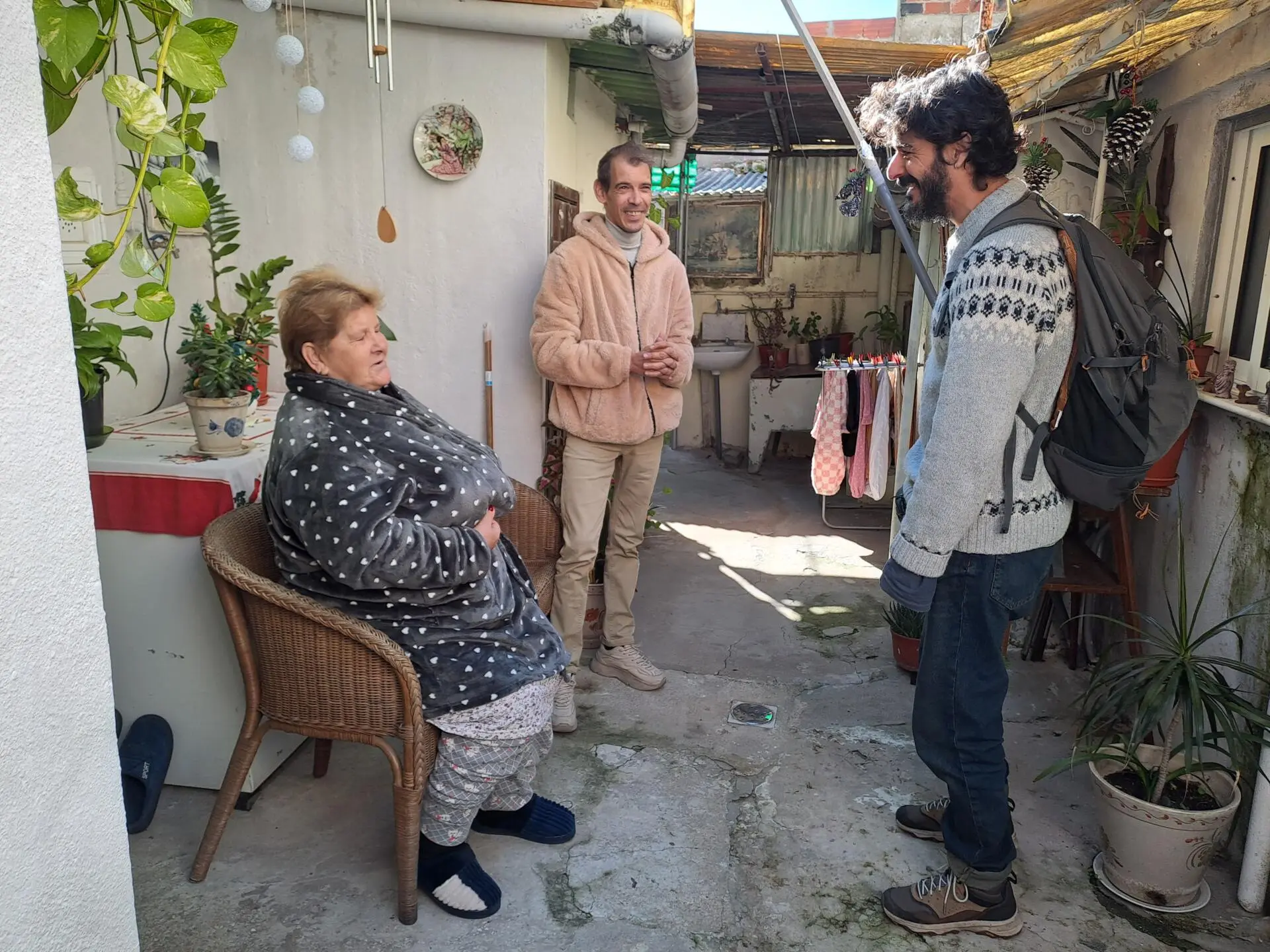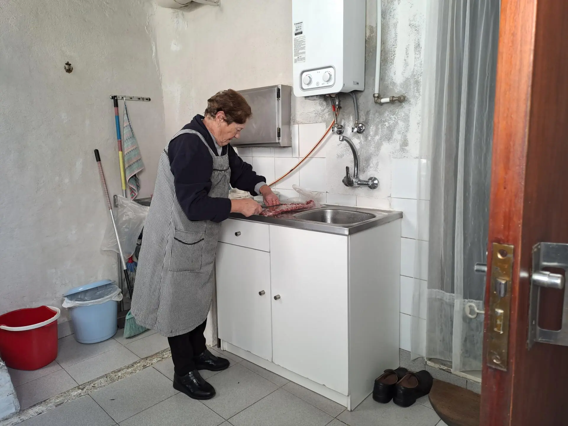 De avental e galochas, Maria da Purificação Monteiro deixa a porta aberta para receber a TSF, enquanto prepara o almoço. O pequeno fogão está na zona do pátio, porque a água não chega à cozinha, no interior da casa. Com 82 anos, Maria da Purificação vive no Pátio da Quintinha, na freguesia do Beato, há mais de 60. "Morava numa barraca" e, quando "vagou uma casa", foi morar para lá. Na altura, trabalhava na fábrica de bolachas situada do outro lado da rua e a casa tinha poucas condições de habitabilidade. A família construiu a casa-de-banho, ainda hoje no exterior da casa. Acrescentou um anexo, uma cobertura e pequenas comodidades, mas enfrenta, agora, a ameaça de ficar sem tecto.